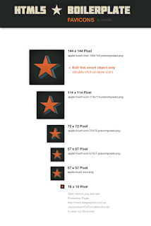 O HTML5 Boilerplate fornece uma lista de arquivos com uma base pré-fixada de ícones que podem ser utilizados pelo desenvolvedor ou substituídos por outros ícones nas construções web. Os ícones de atalho para cada página deverão ser colocados no diretório raiz de cada site.